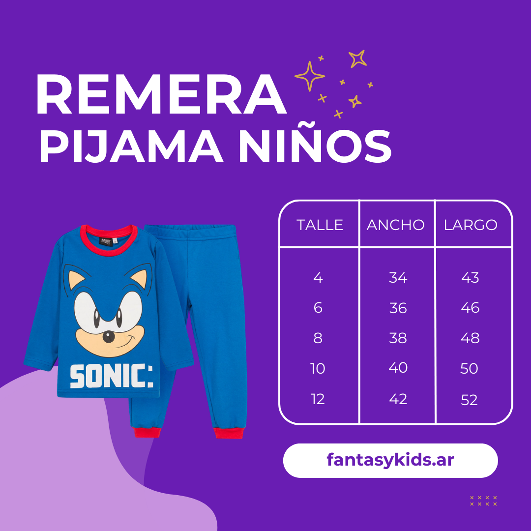 Para el nene que va a toda velocidad incluso cuando duerme. El Pijama Sonic tiene el diseño oficial de SEGA — el erizo azul más rápido del mundo en algodón suave y colores que no destiñen. Porque hasta dormido, Sonic siempre corre.