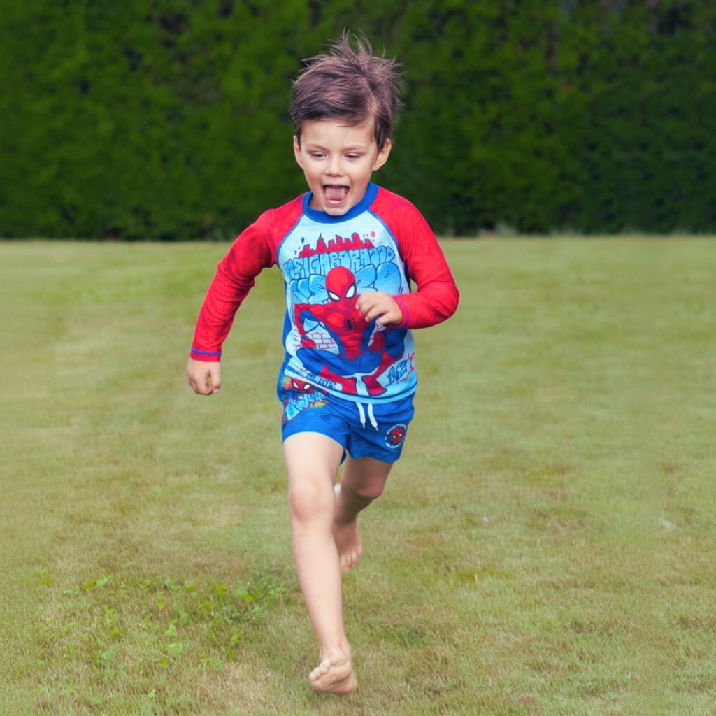 Esta remera UV importada de Spiderman, con certificación oficial y la máxima protección solar del mercado: bloquea el 98% de los rayos UV. Está confeccionada en 85% poliéster y 15% elastano, un tejido liviano, flexible y de secado rápido, pensado para que los chicos se muevan cómodos y seguros sin que vos tengas que estar pendiente todo el tiempo.